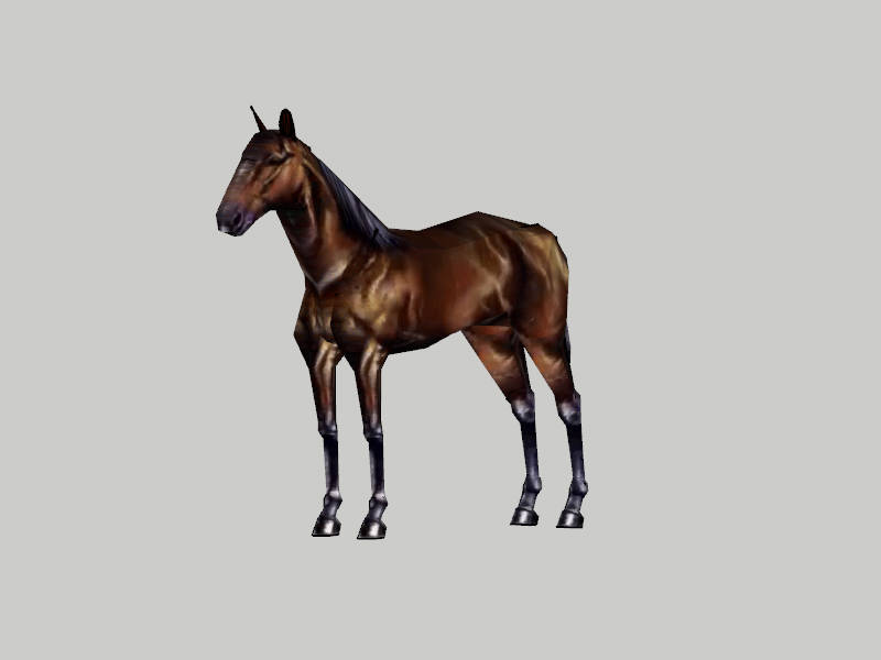 Brown Horse Animals 762 Beautiful brown horse SketchUp modelDownloadEdges:1874Faces:1227File Version:SketchUp 7.skp File Size:627 KbTag Count:2Materials:3Domesticated AnimalsHorsesMammals