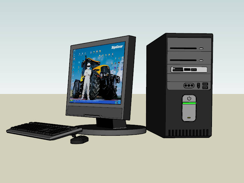 Modern desktop computer with keyboard and mouse sketchup 3d model
