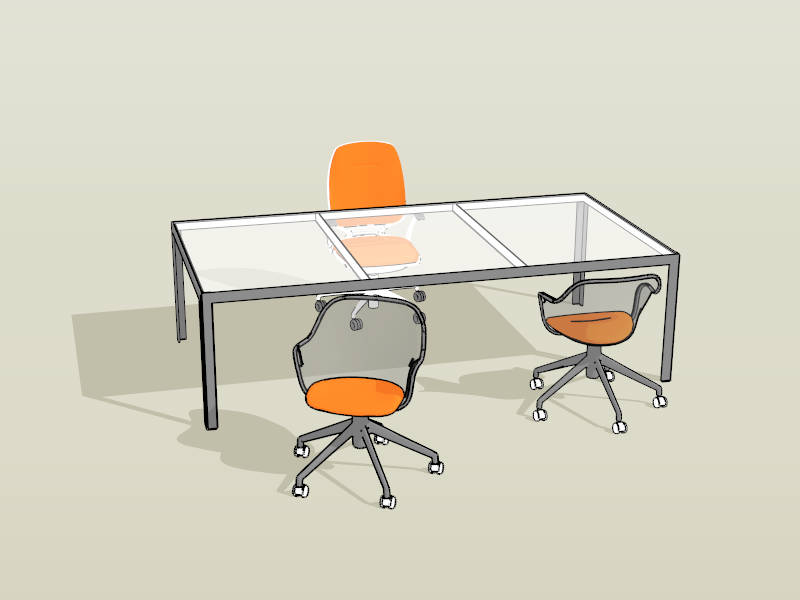Glass Office Desk and Chairs Office Furniture 1.19kModern design glass office desk and chairs sketchup 3d model.DownloadEdges:121261Faces:69865File Version:SketchUp 6.skp File Size:17.3 MBTag Count:5Materials:3Render:NoneChairsDesks