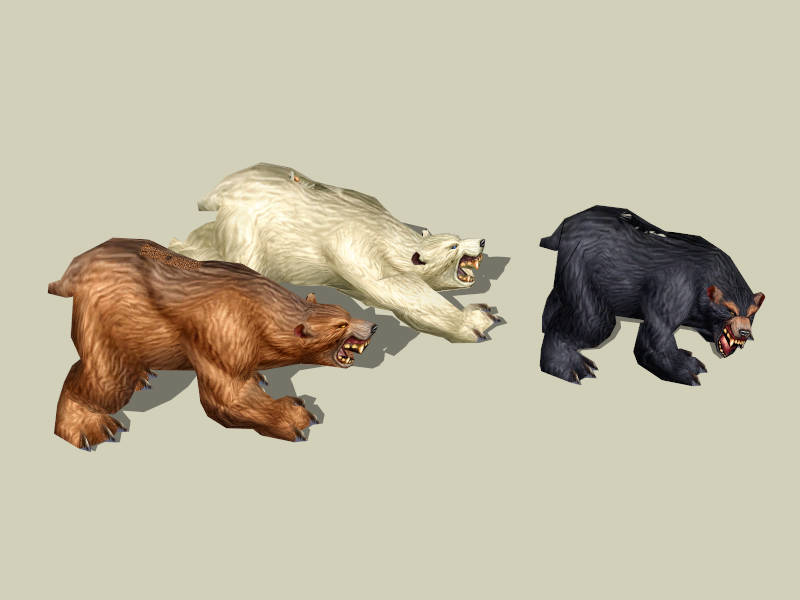 Bears Collection Animals 1.35kBrown bear, black bear and polar bear sketchup 3d model.DownloadEdges:2794Faces:1858File Version:SketchUp 8.skp File Size:1.37 MBTag Count:1Materials:3Render:NoneBearsBeastMammals