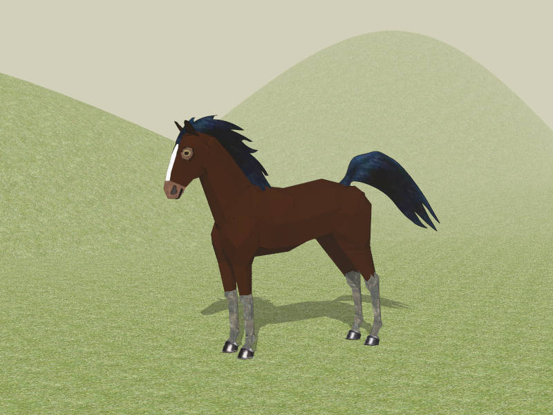 Wild Mountain Horse Animals 1.03kWild mountain horse sketchup 3d model.DownloadEdges:16825Faces:9100File Version:SketchUp 8.skp File Size:2.12 MBTag Count:2Materials:28Render:NoneHorsesMammals