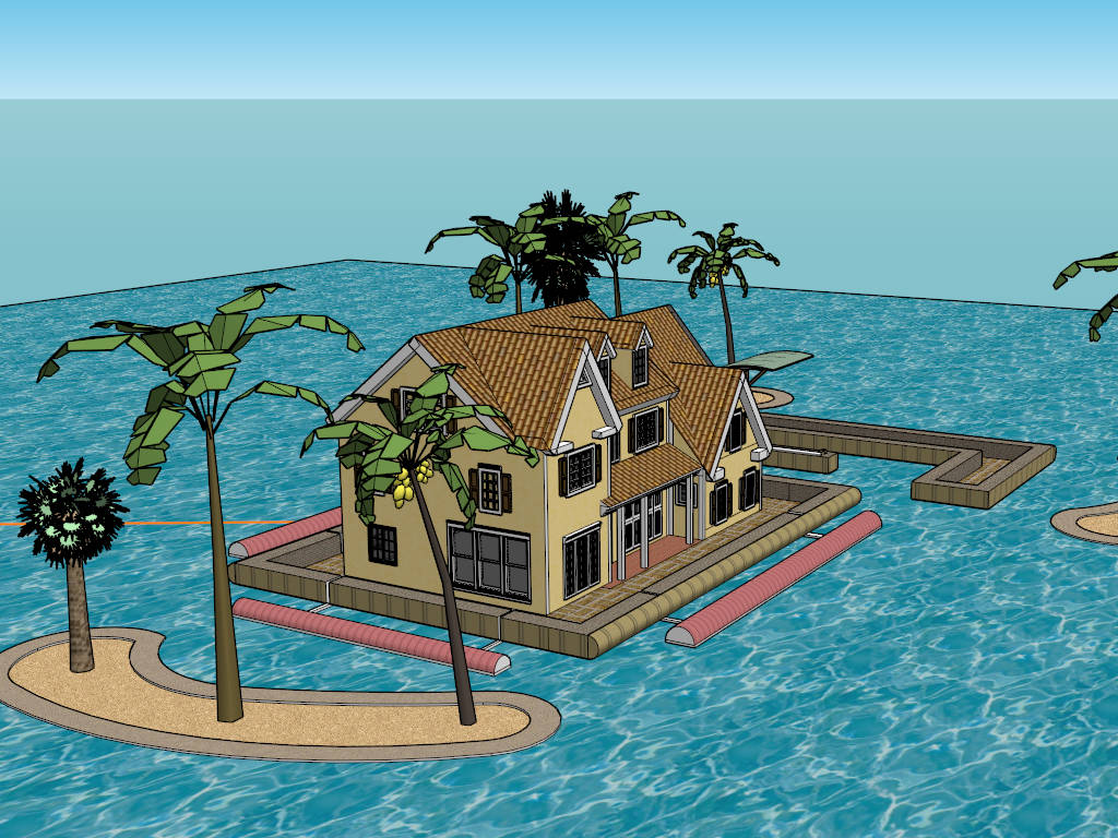 Floating Sea House Residential Buildings 547Floating sea house and coconut palm trees sketchup 3d model.DownloadEdges:31096Faces:11317File Version:SketchUp 8.skp File Size:1.06 MBTag Count:3Materials:36Render:NoneHomeHousesTrees