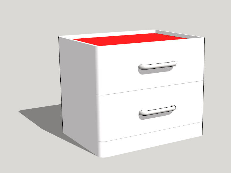Modern White Nightstand with Drawers Bedroom 526Modern white nightstand with drawer sketchup 3d model.DownloadEdges:4242Faces:2264File Version:SketchUp 6.skp File Size:524 KBTag Count:1Materials:3Render:NoneNightstand