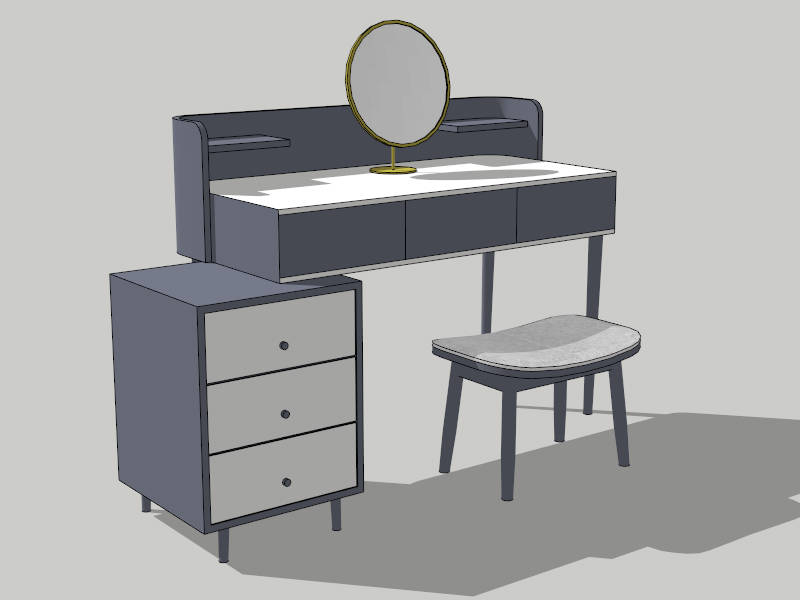 Modern Makeup Vanity Table with Storage Bedroom 1.15kModern makeup vanity table with mirror, stool and side cabinet sketchup 3d model.DownloadEdges:2697Faces:1252File Version:SketchUp 2013.skp File Size:394 KBTag Count:2Materials:14Render:NoneDressing Tables