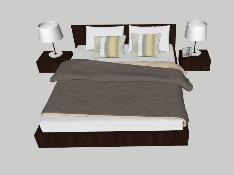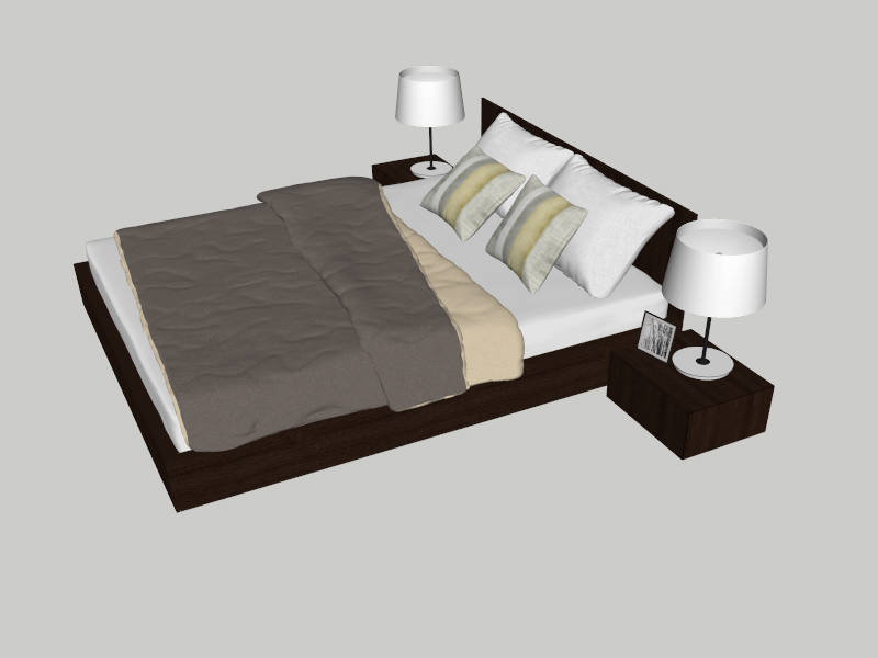 Modern King Platform Bed with Nightstands Bedroom 1.08kModern king platform bed with Nightstands and table lamps sketchup 3d model.DownloadEdges:252367Faces:164525File Version:SketchUp 8.skp File Size:52 MBTag Count:1Materials:20Render:NoneBedsNightstandTable Lamps
