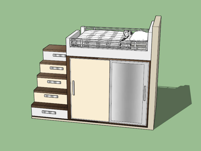 Loft Bed with Wardrobe Bedroom 937Loft bed with wardrobe sketchup 2014 3d model.DownloadEdges:23515Faces:14728File Version:SketchUp 2014.skp File Size:6.16 MBTag Count:1Materials:11Render:NoneBedsWardrobe