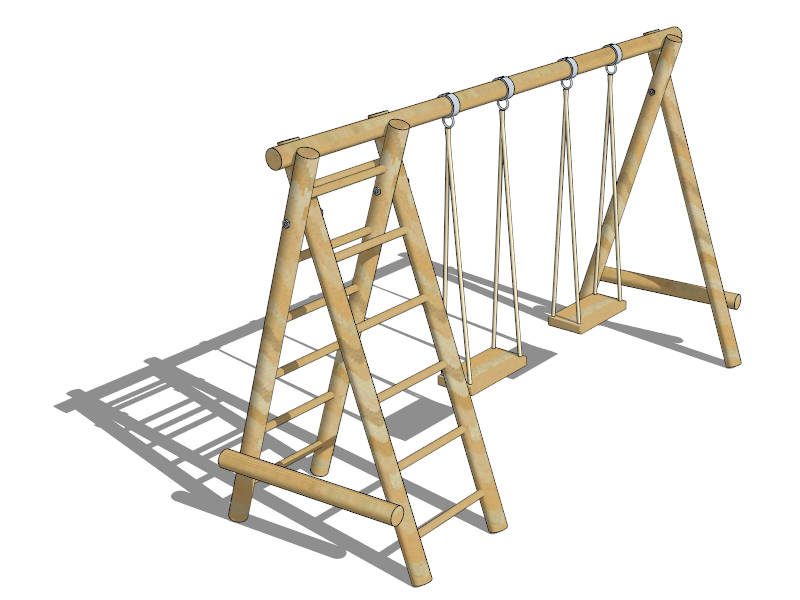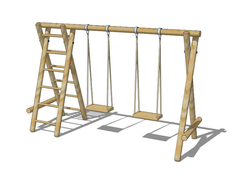 Wooden Double Swing Set Playground 1.64kOutdoor playground wooden double swing set with climbing ladder sketchup 3d model.DownloadEdges:7079Faces:2924File Version:SketchUp 8.skp File Size:238 KBTag Count:1Materials:3Render:NoneClimbersSwings