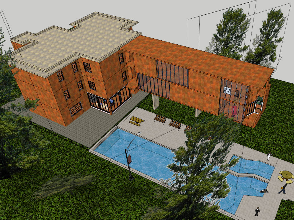 Red Brick Villa Residential Buildings 1.38kRed brick villa with swimming pool sketchup 3d model.DownloadEdges:62279Faces:28880File Version:SketchUp 7.skp File Size:18.2 MBTag Count:10Materials:135Render:NoneHousesVillas
