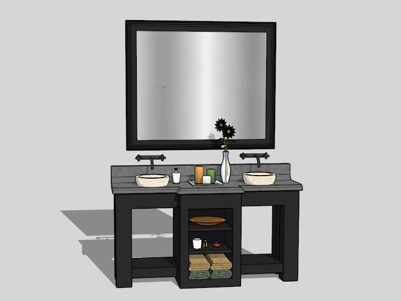 Black Double Sink Bathroom Vanity Bathroom 1.31kBlack wood bathroom vanity with double sink and mirror sketchup 3d model.DownloadEdges:30897Faces:14148File Version:SketchUp 6.skp File Size:1.5 MBTag Count:1Materials:37Render:NoneBathroom VanityWash Basins