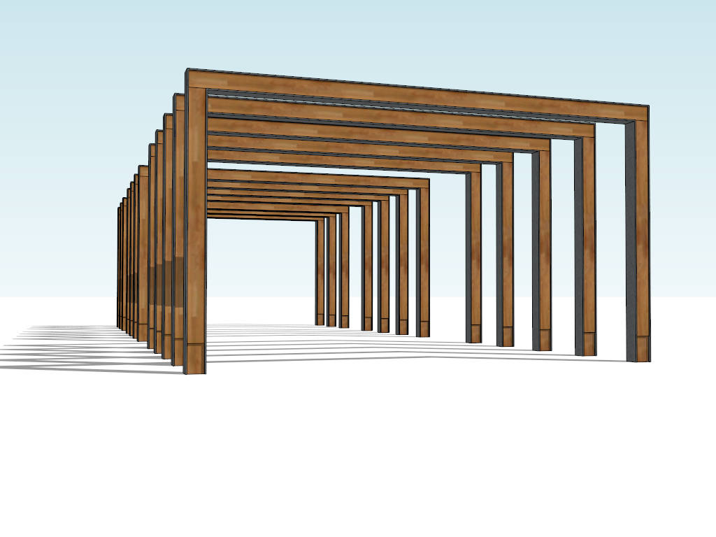 Wooden Pergola Walkway Garden Design 1.08kWooden pergola walkway sketchup 3d model.DownloadEdges:1440Faces:528File Version:SketchUp 7.skp File Size:94 KBTag Count:1Materials:2Render:NonePergolas