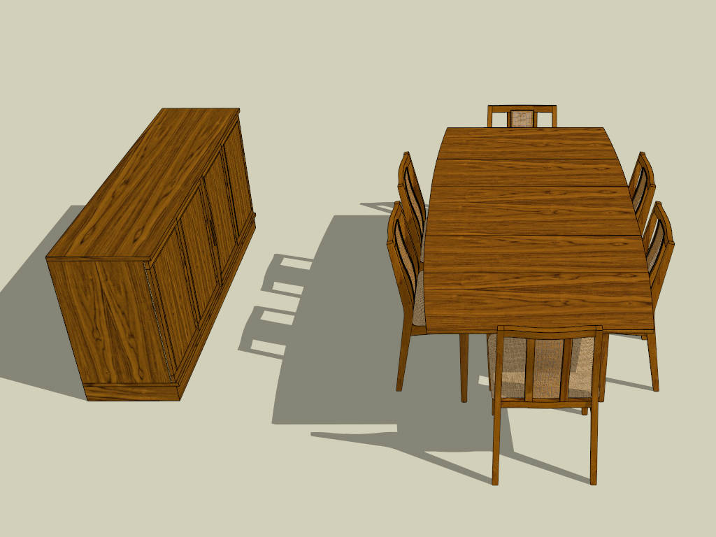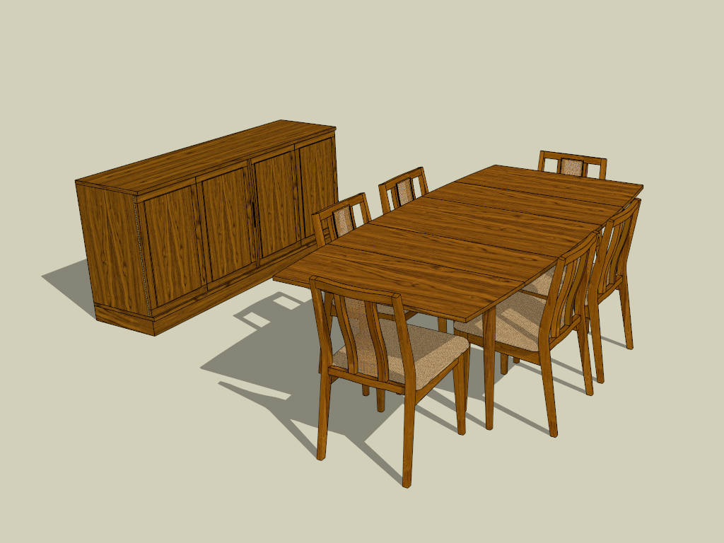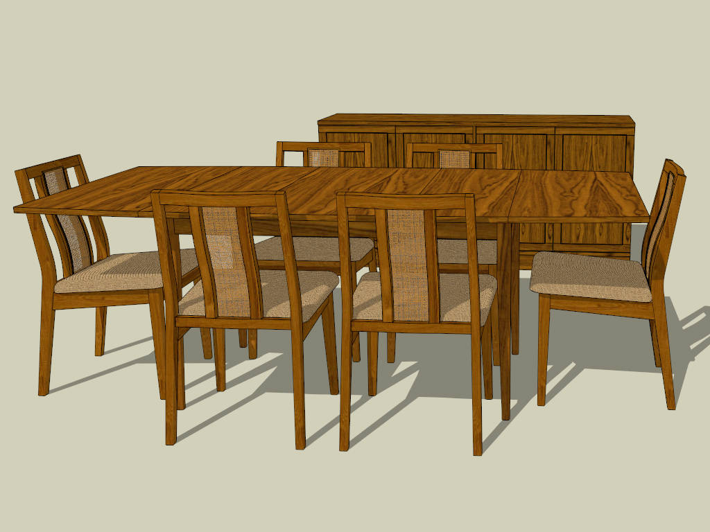 Tropical Dining Room Set Dining Room 1.33kTropical dining room set sketchup 3d model, 7 piece dining room table sets and dining sideboard cabinet.DownloadEdges:41750Faces:18985File Version:SketchUp 6.skp File Size:2.09 MBTag Count:4Materials:11Render:NoneDining ChairDining Room SetsDining TableSideboards