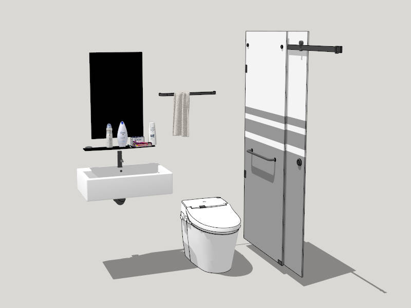 Simple Bathroom Design Bathroom 1.62kSimple bathroom design sketchup 3d model, toilet, wall mount sink, mirror and sliding bathroom door.DownloadEdges:408709Faces:211731File Version:SketchUp 8.skp File Size:26.8 MBTag Count:2Materials:22Render:NoneSinksToilets