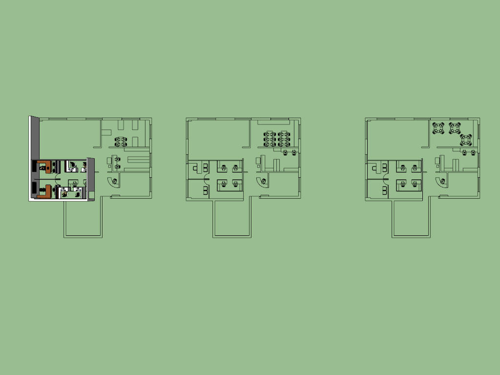 Small office layout idea sketchup 3d model, this small offcie has six cubicles. offcie workstation desk and chairs.