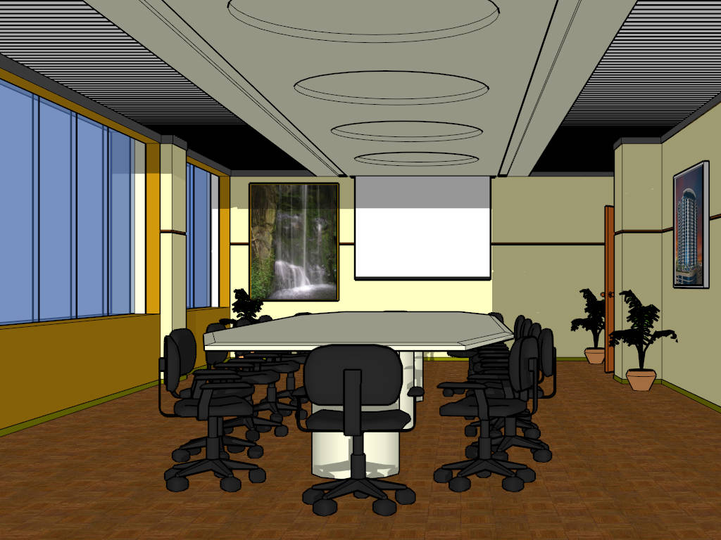 Conference Room Design Idea Office 946Conference room design idea sketchup 3d model, white conference table and 14 chairs, indoor plants and decorative paintings.DownloadEdges:23813Faces:9723File Version:SketchUp 6.skp File Size:703 KBTag Count:5Materials:23Render:NoneChairsConference RoomTables