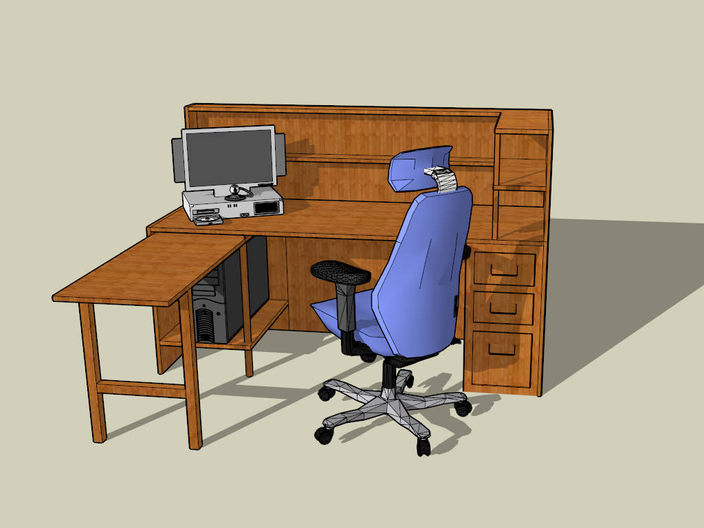 Vintage Office Desk with Hutch Office 359Vintage l-shaped office desk with hutch and drawers sketchup 3d model for office interior design.DownloadEdges:17919Faces:8942File Version:SketchUp 6.skp File Size:2.99 MBTag Count:4Materials:93Render:NoneChairsDesks