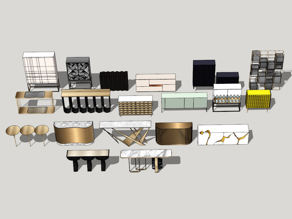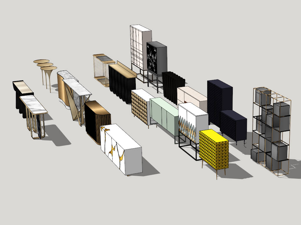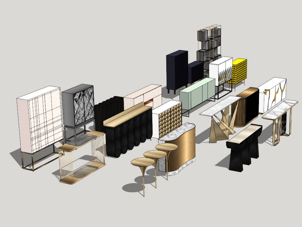 20 Console Tables and Sideboards Collection Furniture 1.62kA collection of different styles console tables and sideboards sketchup 3d model for interior design.DownloadEdges:87143Faces:38546File Version:SketchUp 2014.skp File Size:8.6 MBTag Count:2Materials:39Render:NoneConsole TableSideboards