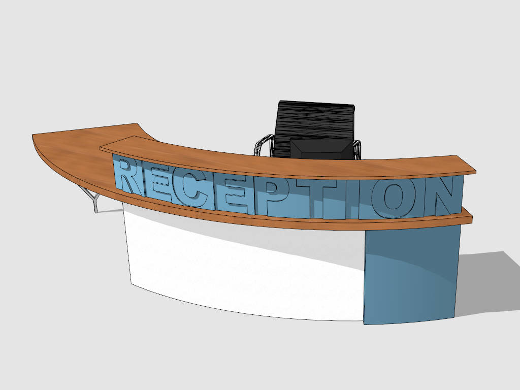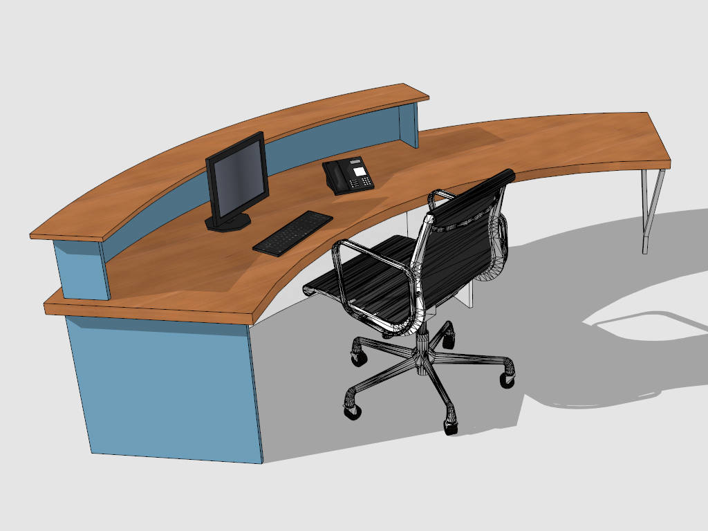 Modern Curved Reception Desk Office 1.34kModern curved reception desk and chair sketchup 3d model for office interior design.VIP onlyOnly VIP downloadUpgrade VIPBuy nowEdges:10893Faces:6514File Version:SketchUp 8.skp File Size:14.6 MBTag Count:3Materials:196Render:NoneReception Desks