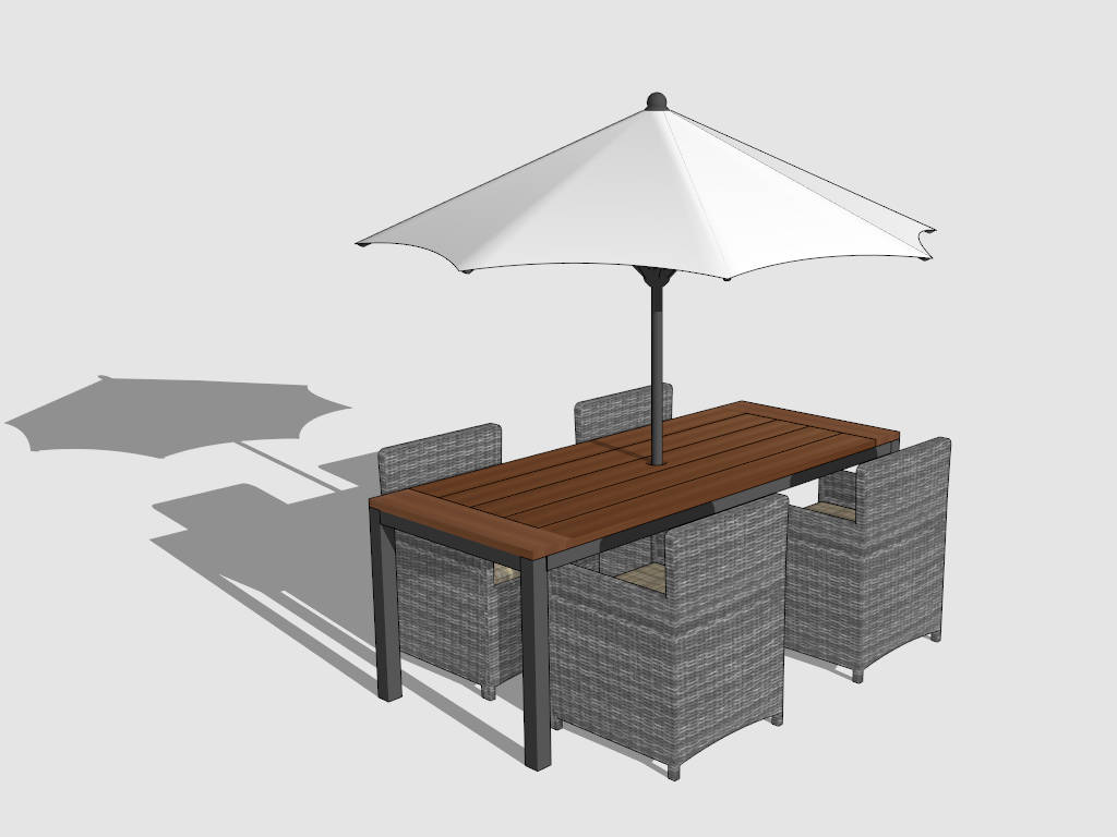 Outdoor Dining Set with Umbrella Outdoor Furniture 1.58k5 Piece outdoor patio dining set with umbrella sketchup 3d model.DownloadEdges:2188Faces:870File Version:SketchUp 8.skp File Size:432 KBTag Count:1Materials:10Render:NoneDining TableGarden (Patio) FurniturePatio SetUmbrella