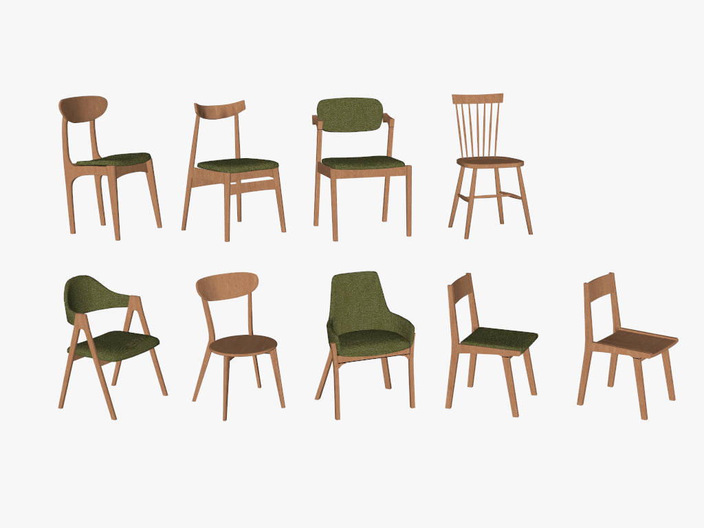 9 Modern Wood Dining Chairs Collection Dining Room 1.89kA collection of 9 modern wood dining chairs sketchup 3d model for interior design.VIP onlyOnly VIP downloadUpgrade VIPBuy nowEdges:175696Faces:115639File Version:SketchUp 8.skp File Size:19.3 MBTag Count:1Materials:5Render:NoneDining Chair