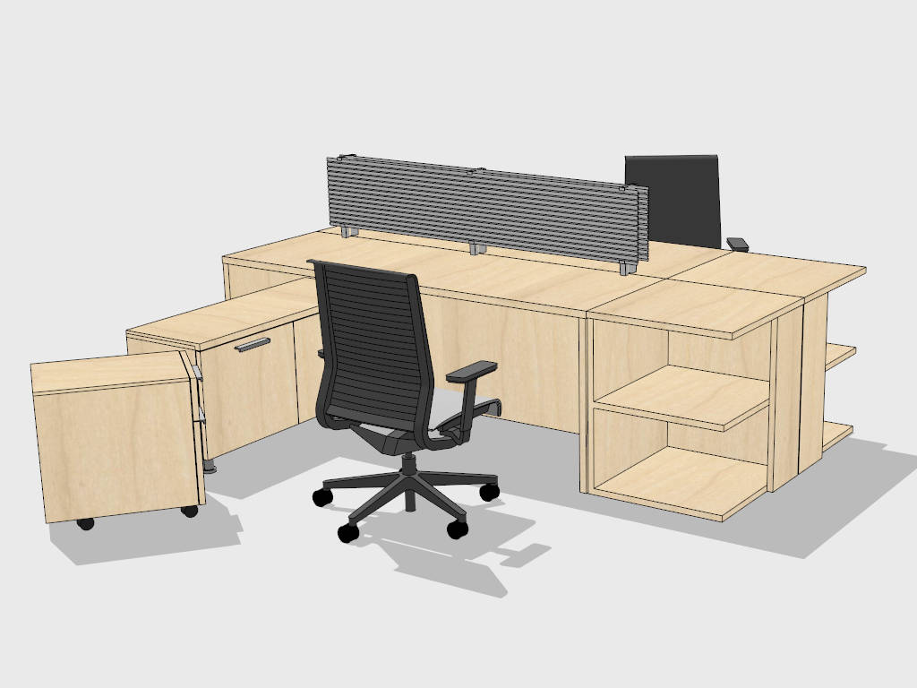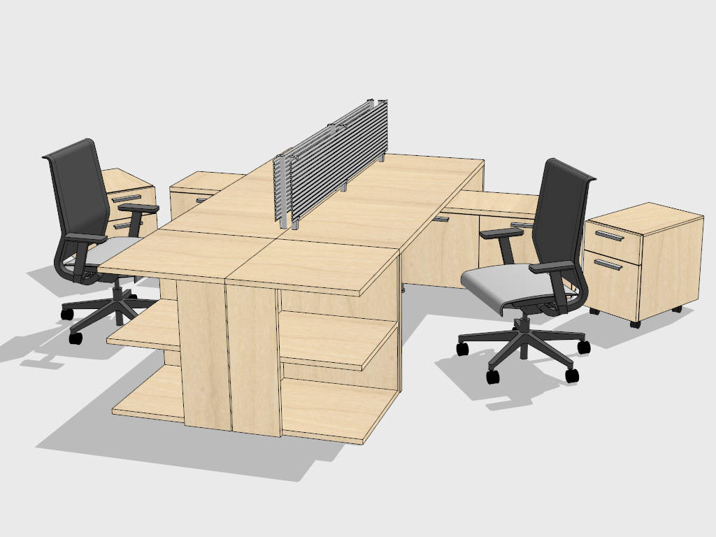 Two Person Workstation Desk Office Furniture 828Two person divider office workstation desk with filing cabinets and chairs sketchup 3d model for office interior design.DownloadEdges:16737Faces:6412File Version:SketchUp 8.skp File Size:770 KBTag Count:9Materials:11Render:NoneDesksFiling CabinetsOffice Chair