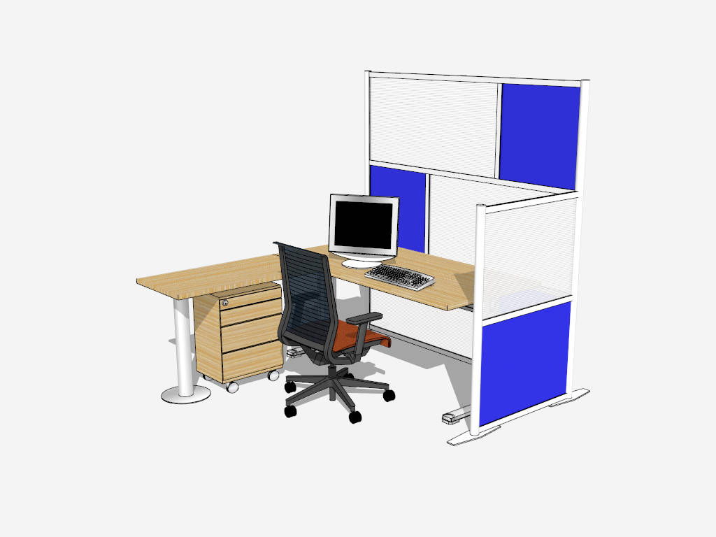 L Shaped Office Cubicle Workstation Desk Office 799L shaped office cubicle workstation desk with storage sketchup 3d model for office furniture design.DownloadEdges:17684Faces:6569File Version:SketchUp 8.skp File Size:1.88 MBTag Count:10Materials:32Render:NoneCubiclesDesksOffice Chair