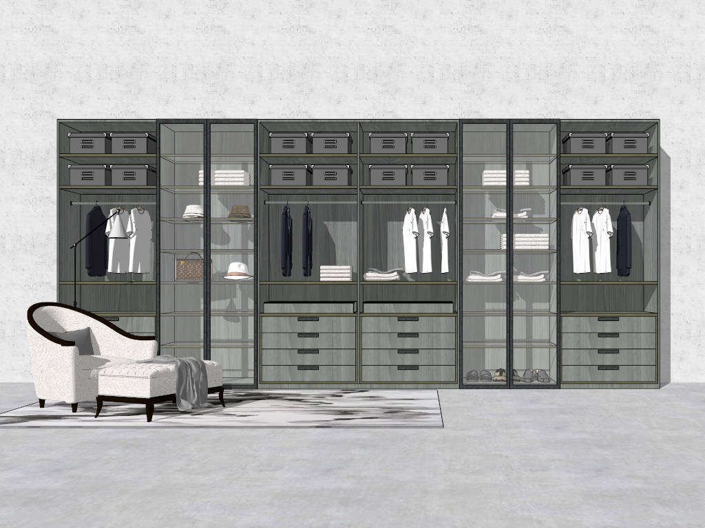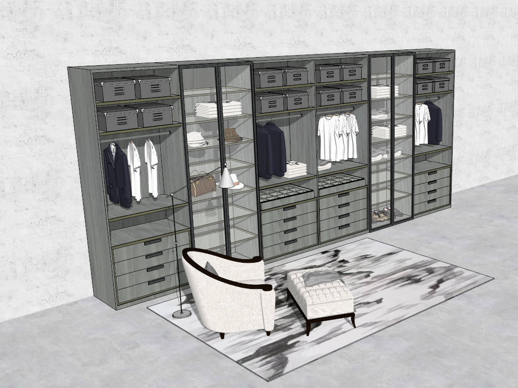 Open Closet Wardrobe Design Bedroom 1.98kGrey wood open wardrobe closet with shelves sketchup 3d model for dressing room interior design.VIP onlyOnly VIP downloadUpgrade VIPBuy nowEdges:516763Faces:325856File Version:SketchUp 8.skp File Size:36.7 MBTag Count:3Materials:46Render:NoneArmchairClosetDressing RoomWardrobe