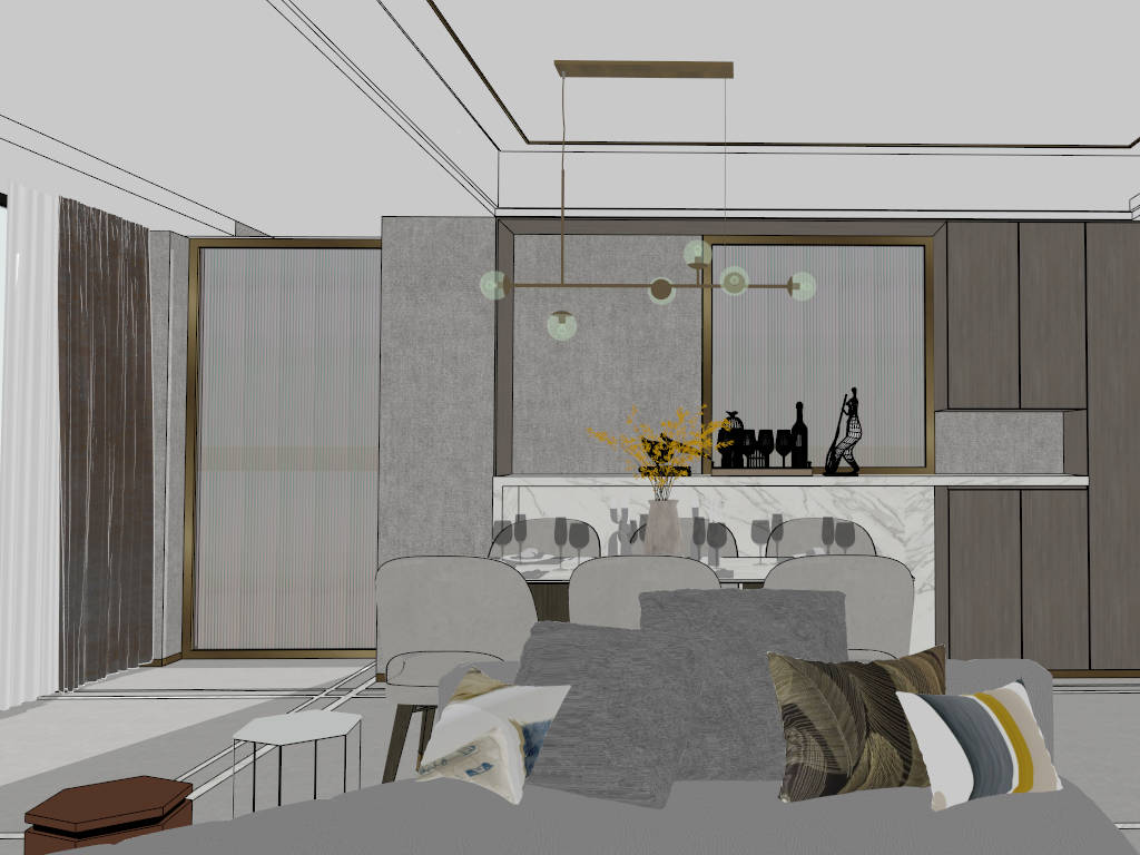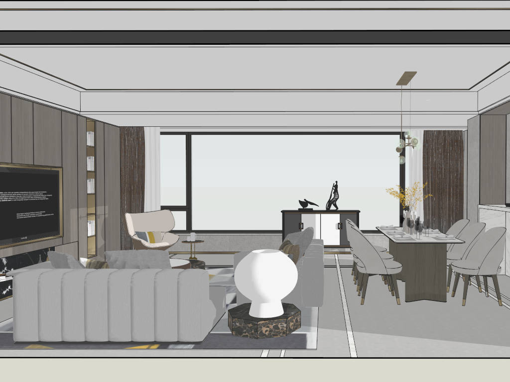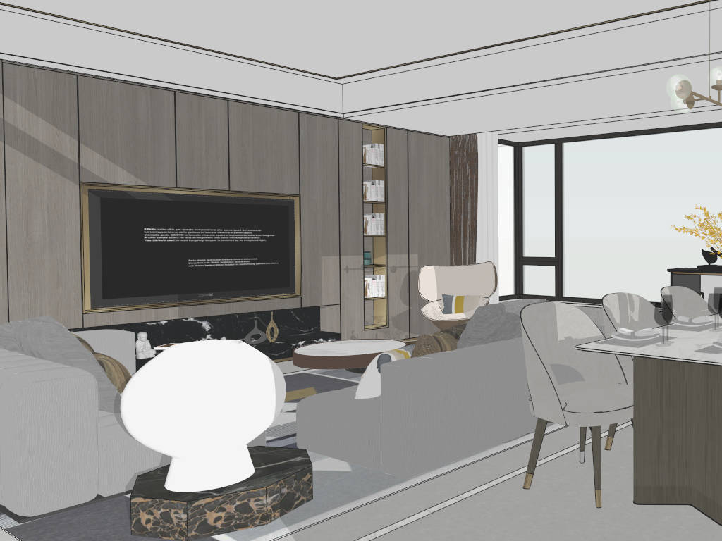 Modern minimalist style living room and dining room combo decor idea sketchup 3d model for interior design.