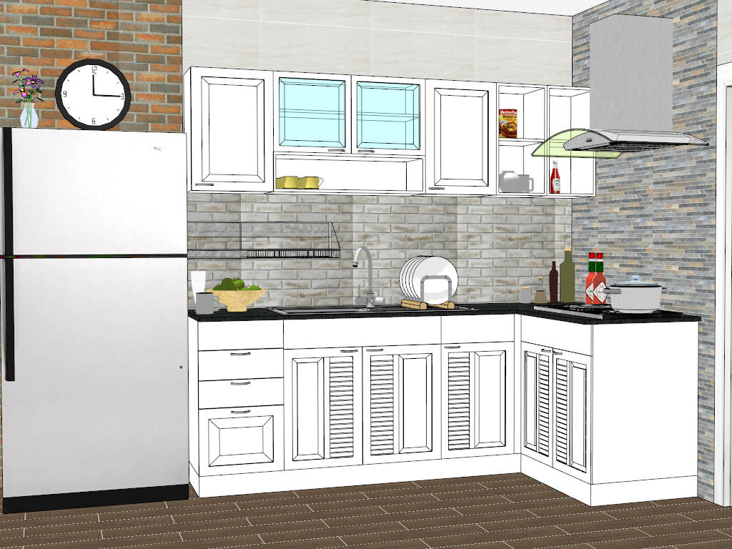 Small Apartment Kitchen Design Idea Kitchen 739Small apartment white kitchen idea sketchup 3d model for interior design.DownloadEdges:92211Faces:44566File Version:SketchUp 8.skp File Size:11.3 MBTag Count:2Materials:82Render:NoneKitchen AppliancesKitchen CabinetsRefrigerators