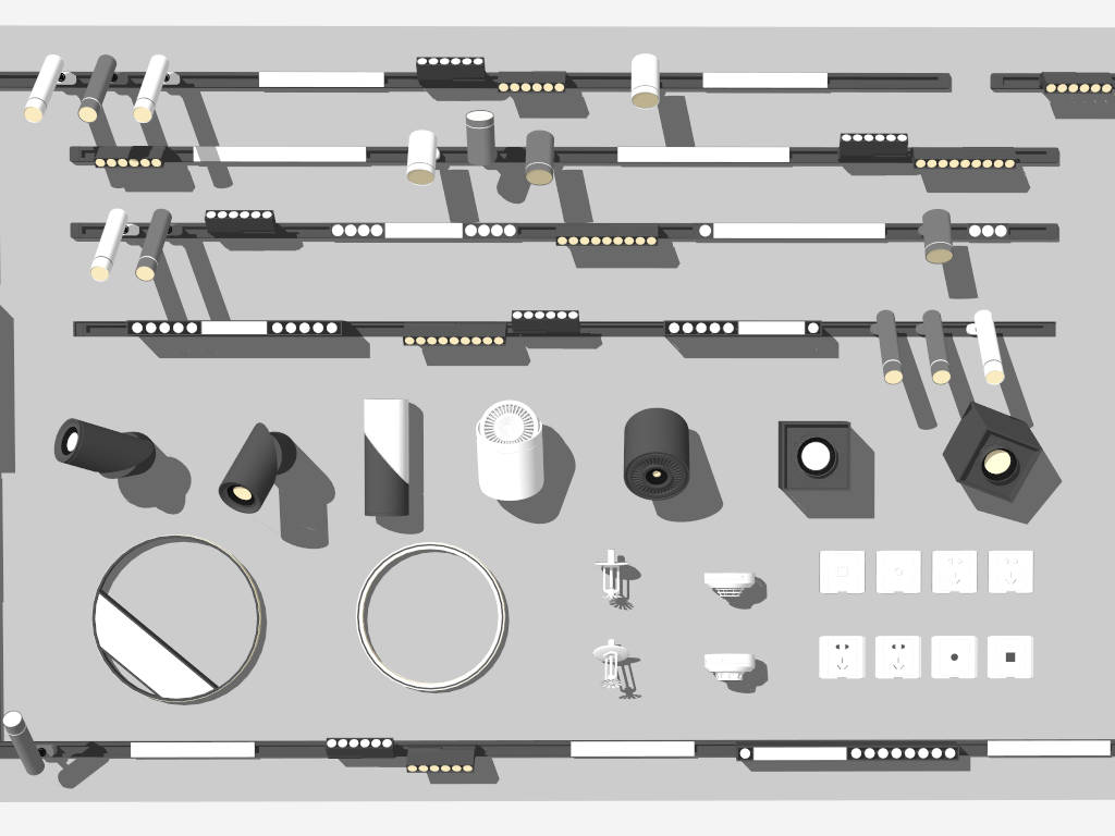 Ceiling Track Lighting System Lighting 1.6kA collection of ceiling track lighting and downlights sketchup 3d model for interior design.VIP onlyOnly VIP downloadUpgrade VIPBuy nowEdges:343026Faces:167890File Version:SketchUp 8.skp File Size:28.2 MBTag Count:1Materials:13Render:NoneDownlightsTrack Lighting