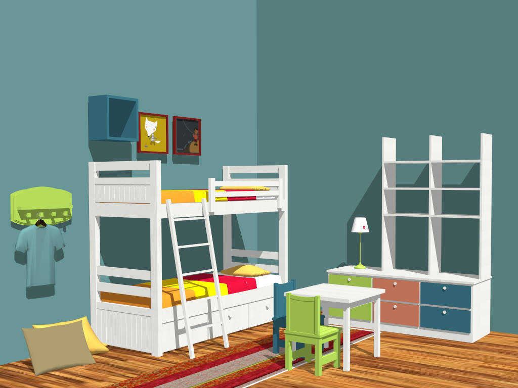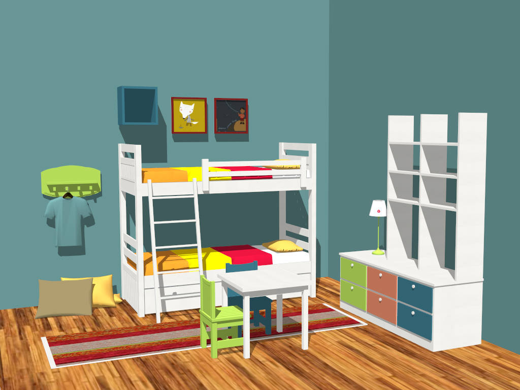 Bunk Bed Boy Room Idea Bedroom 1.07kBunk bed boy room idea sketchup 3d model for kids room interior design.DownloadEdges:34044Faces:19039File Version:SketchUp 8.skp File Size:7.29 MBTag Count:2Materials:73Render:NoneBedroom FurnitureBedsKids Room