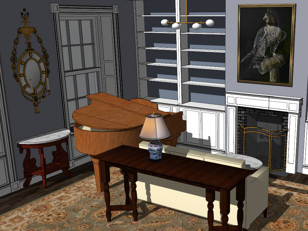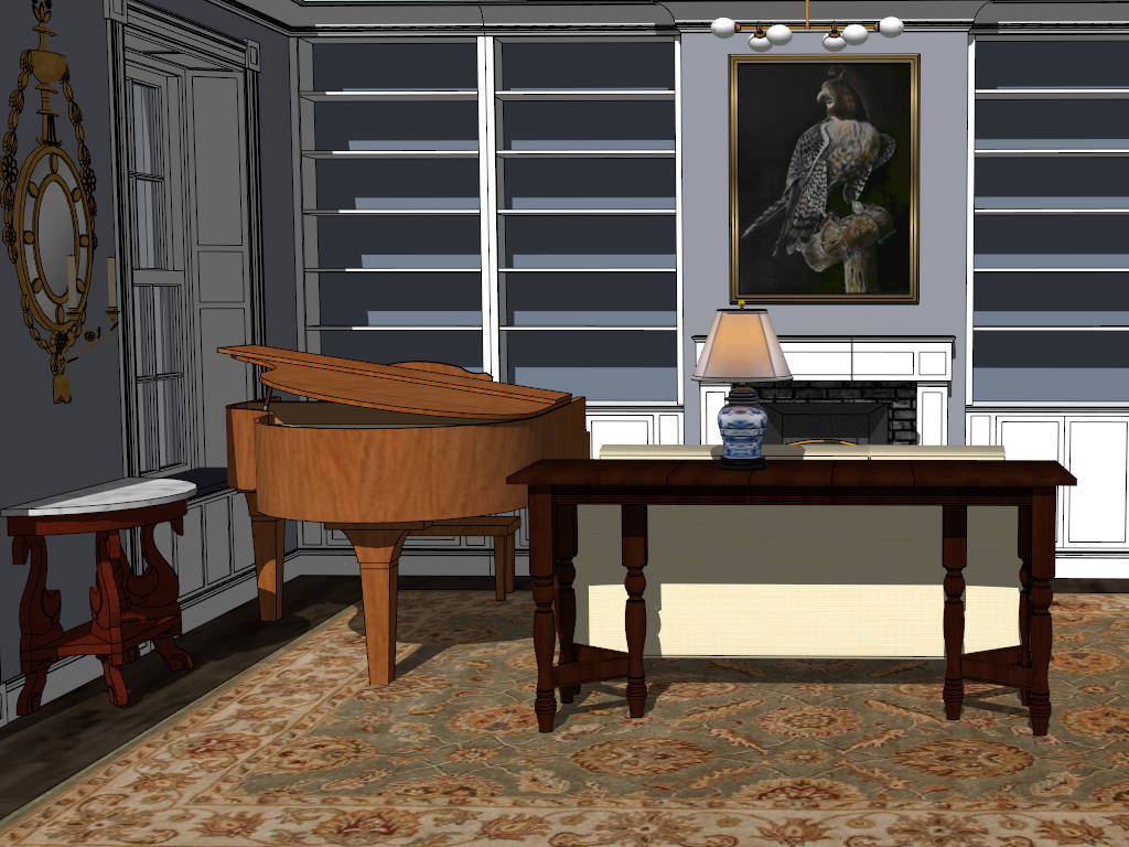 Piano Room Idea Interior Design 1.27kPiano room with fireplace and piano sketchup 3d model for interior design.VIP onlyOnly VIP downloadUpgrade VIPBuy nowEdges:166534Faces:76291File Version:SketchUp 8.skp File Size:16 MBTag Count:4Materials:45Render:NoneFireplacesPianoPlayroomSofas & Couches
