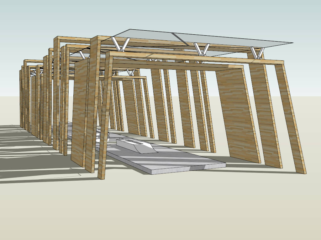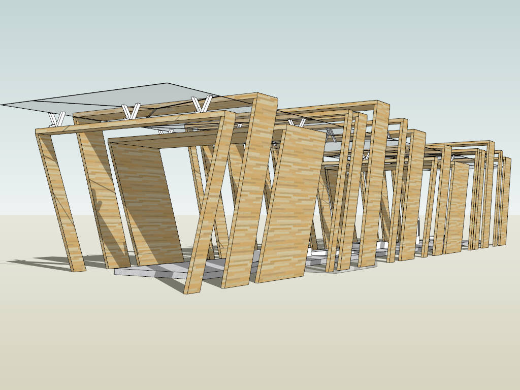 Timber Pergola Breezeway Landscape 1.13kTimber pergola walkway with glass roof sketchup 3d model.DownloadEdges:1843Faces:747File Version:SketchUp 8.skp File Size:286 KBTag Count:2Materials:4Render:NonePergolasWalkway