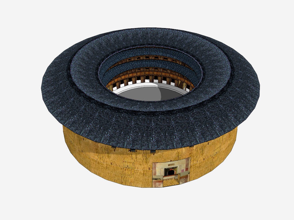 Tulou is a unique residential building found in Fujian Province, China, predominantly built by the Hakka and indigenous Minnan people in regions like Zhangzhou, Longyan, and Nanjing. These structures, known for their substantial scale and thick walls, were built to protect against enemies and accommodate large family cohabitation.