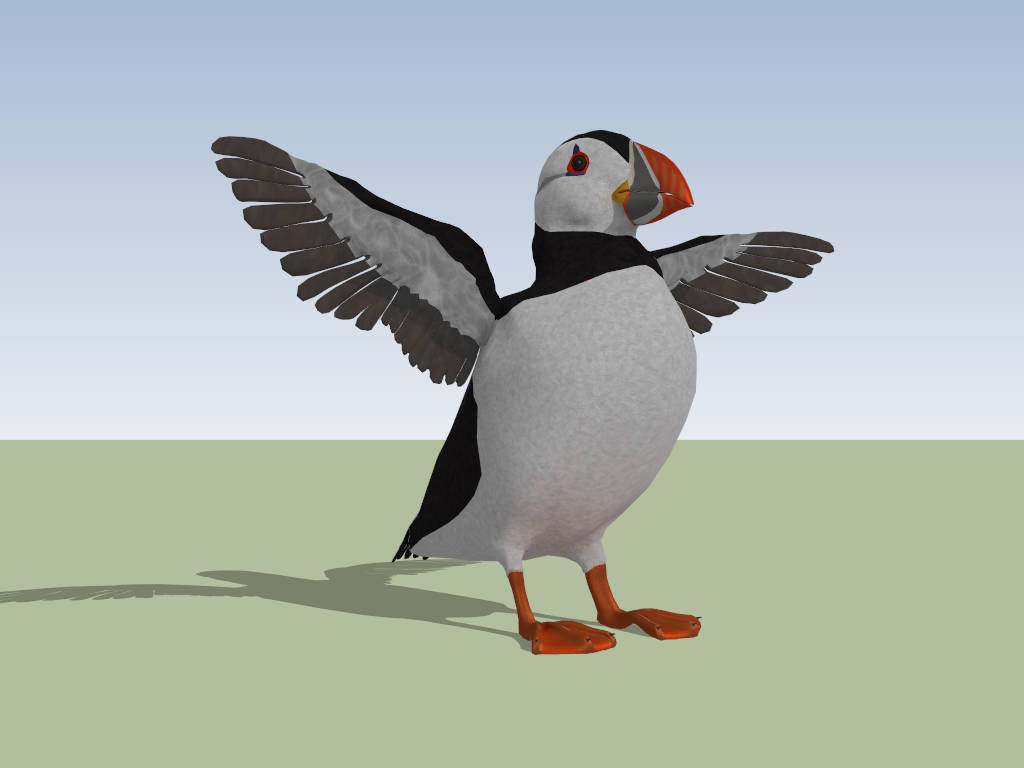 Atlantic Puffin Animals 588Atlantic puffin sketchup 3d model.DownloadEdges:24826Faces:16298File Version:SketchUp 8.skp File Size:10.9 MBTag Count:1Materials:2Render:NoneBirds