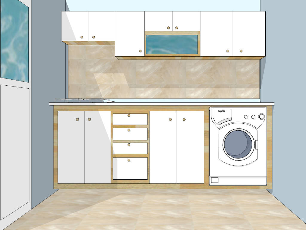 Small apartment kitchen with washer sketchup 3d model for interior design.