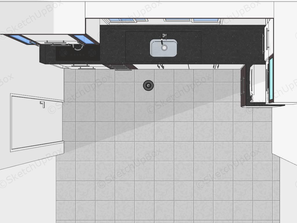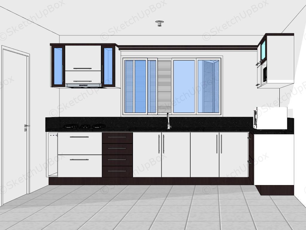 Black and white kitchen ideas sketchup 3d model for kitchen interior design, white kitchen cabinets and black countertops, you can create a stunning black and white kitchen that is both stylish and functional, perfect for any home aesthetic.