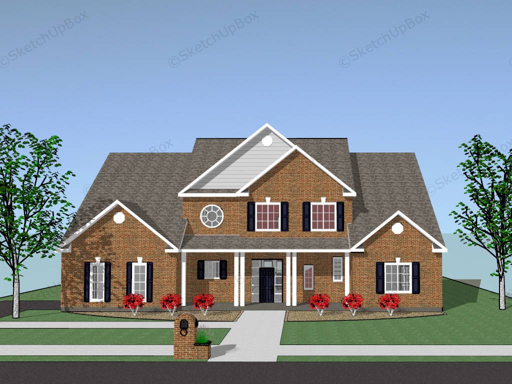 Brick house with swimming pool sketchup 3d model for architectural design and architectural rendering.