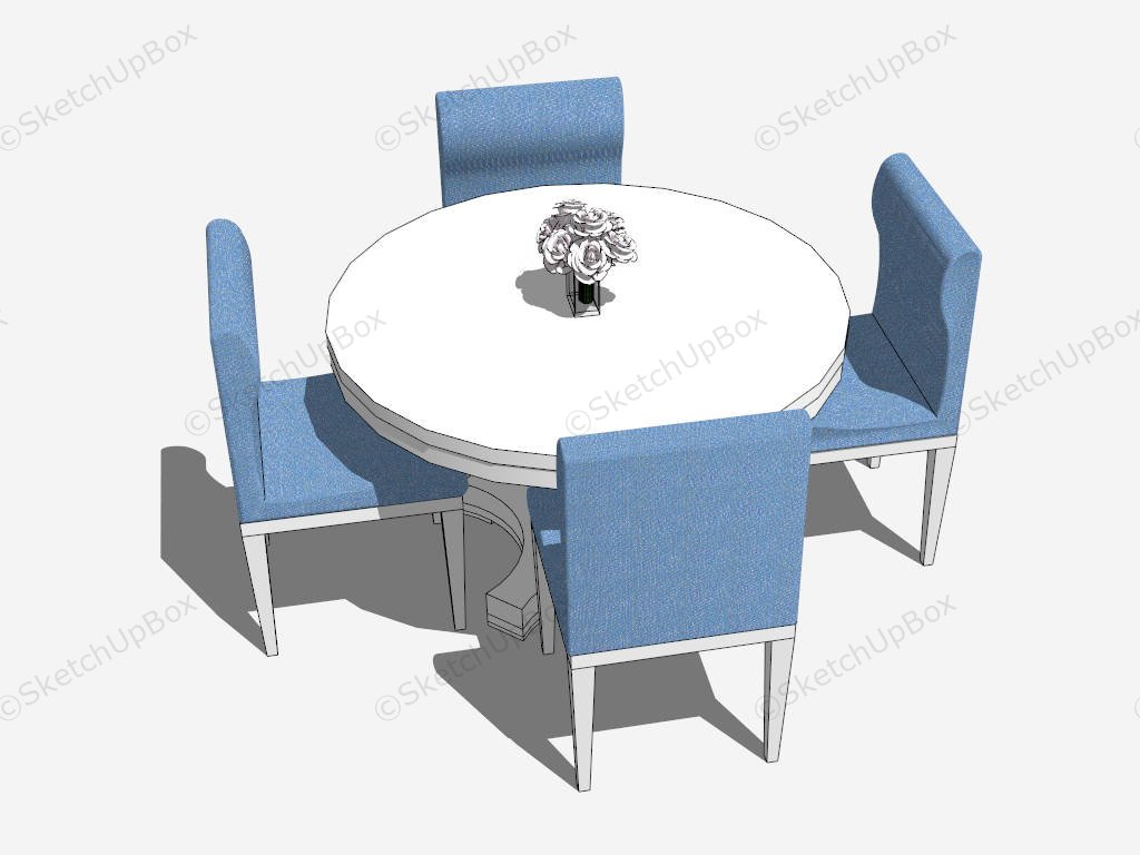 Round Dining Table Set Dining Room 1.57k5-Piece dining table set sketchup 3d model, white round dining table and 4 blue dining chairs.DownloadEdges:144798Faces:67648File Version:SketchUp 8.skp File Size:2.12 MBTag Count:1Materials:9Render:NoneDining ChairDining Room FurnitureDining Table