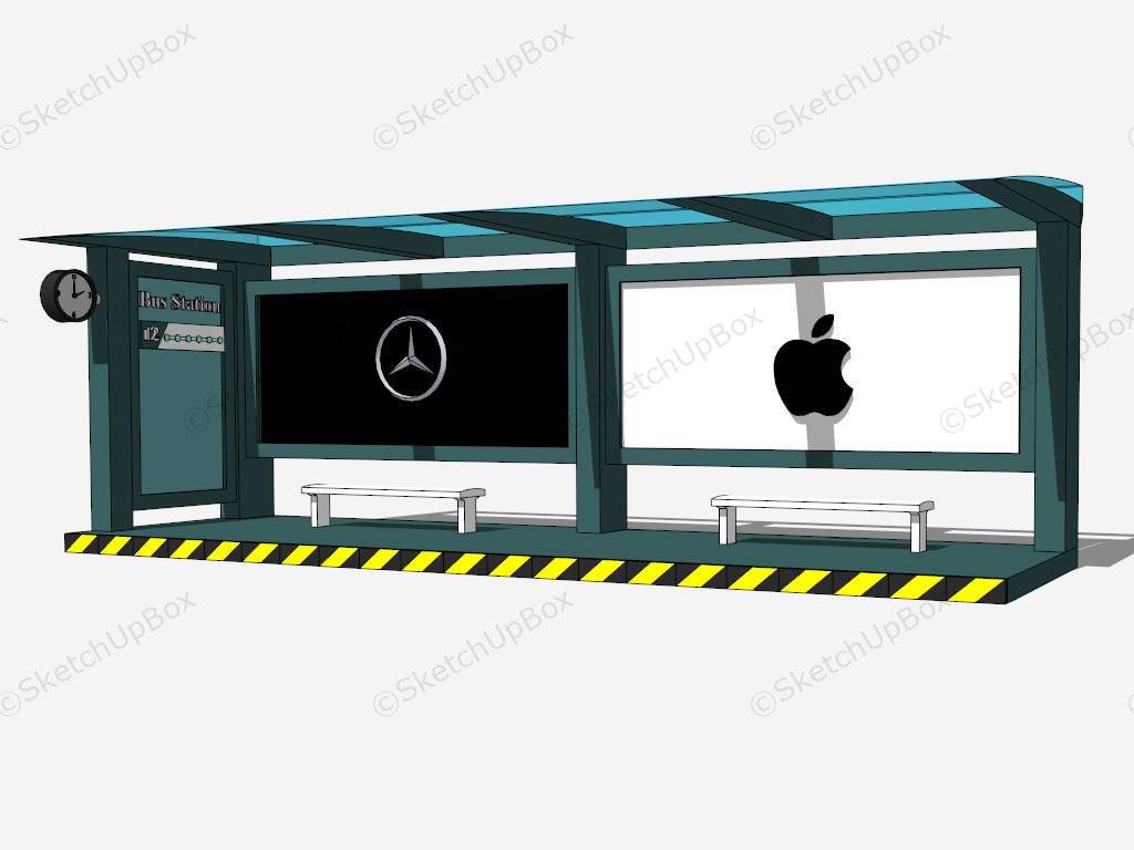 Bus Stop With Advertising Billboard Architectural Elements 1.37kBlue bus stop shelter with Mercedes and Apple advertising billboard sketchup 3d model.DownloadEdges:6272Faces:2319File Version:SketchUp 8.skp File Size:553 KBTag Count:1Materials:19Render:NoneBus StopShedShelterStreet Furniture