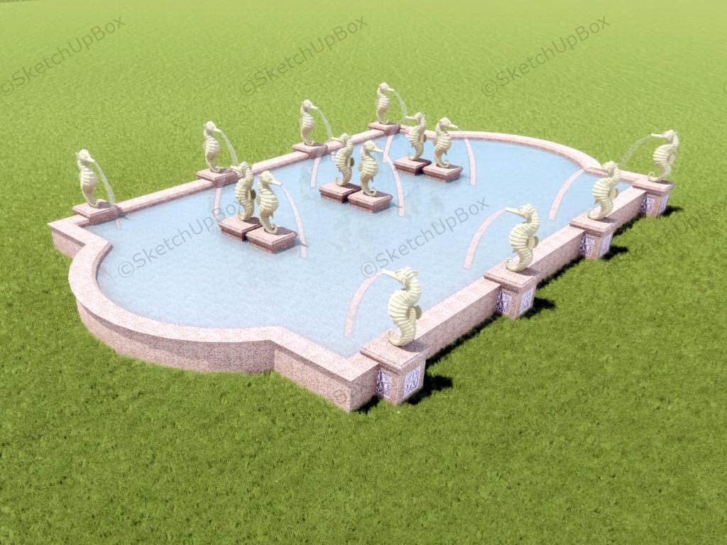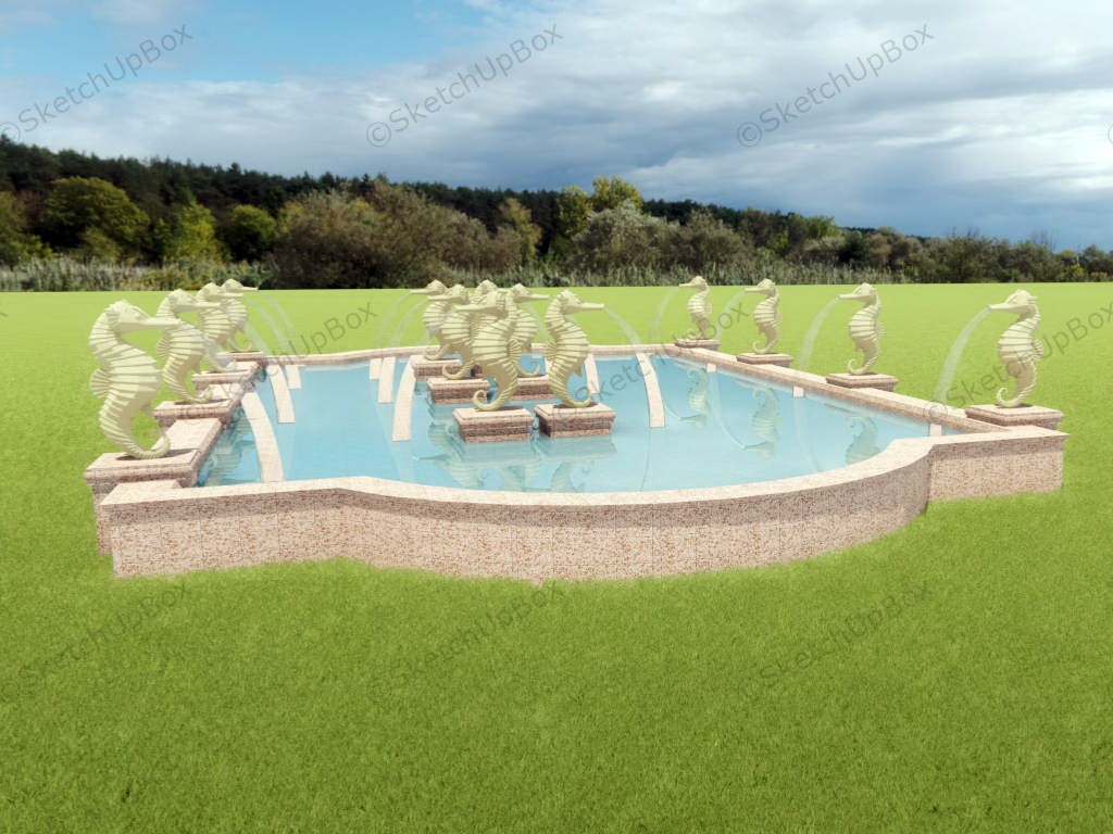 Seahorse Water Fountain Garden Design 1.08kSeahorse fountain water feature in a pond sketchup 3d model for landscape design.VIP onlyOnly VIP downloadUpgrade VIPBuy nowEdges:129128Faces:66847File Version:SketchUp 8.skp File Size:1.99 MBTag Count:1Materials:5Render:NoneFountainsPondsSeahorseWater Feature
