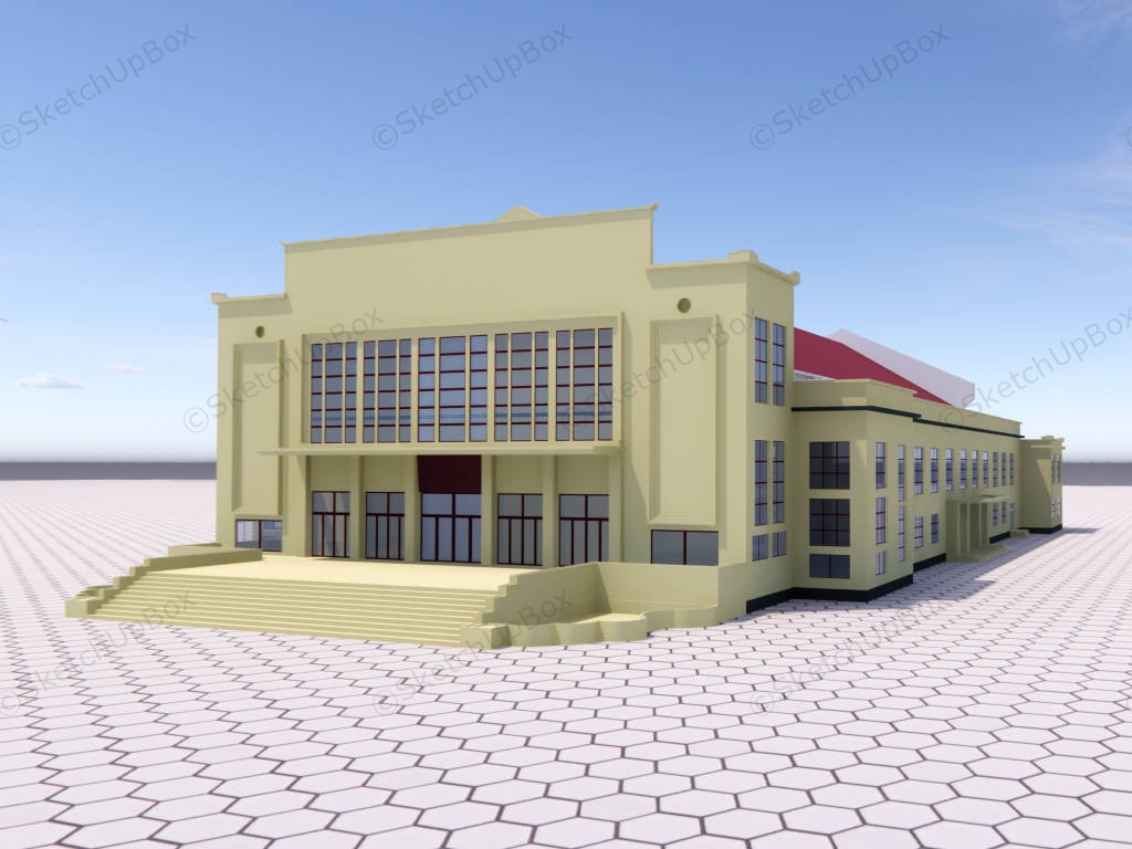 Historic movie theatre exterior sketchup 3d model for architectural design and architectural rendering.