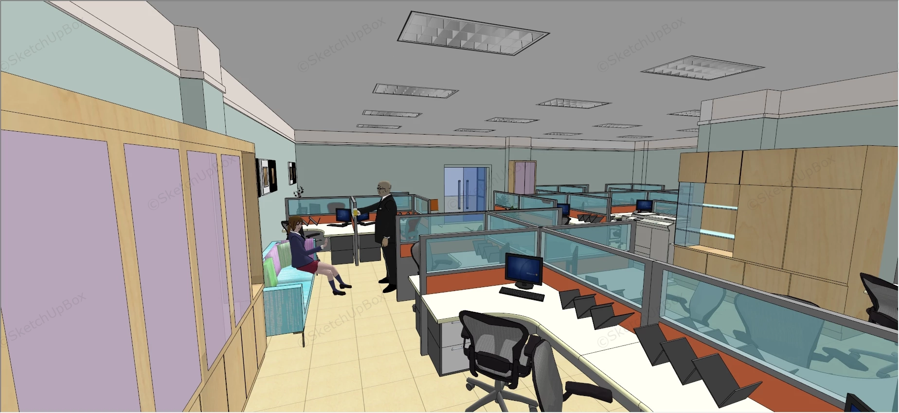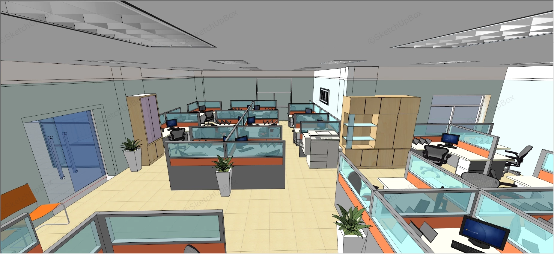 Office Space Cubicle Layout Office 714Office space cubicle layout sketchup 3d model for interior design.DownloadEdges:213701Faces:95481File Version:SketchUp 8.skp File Size:6 MBTag Count:24Materials:104Render:NoneCubiclesOffice LayoutOffice SpaceWorkspace