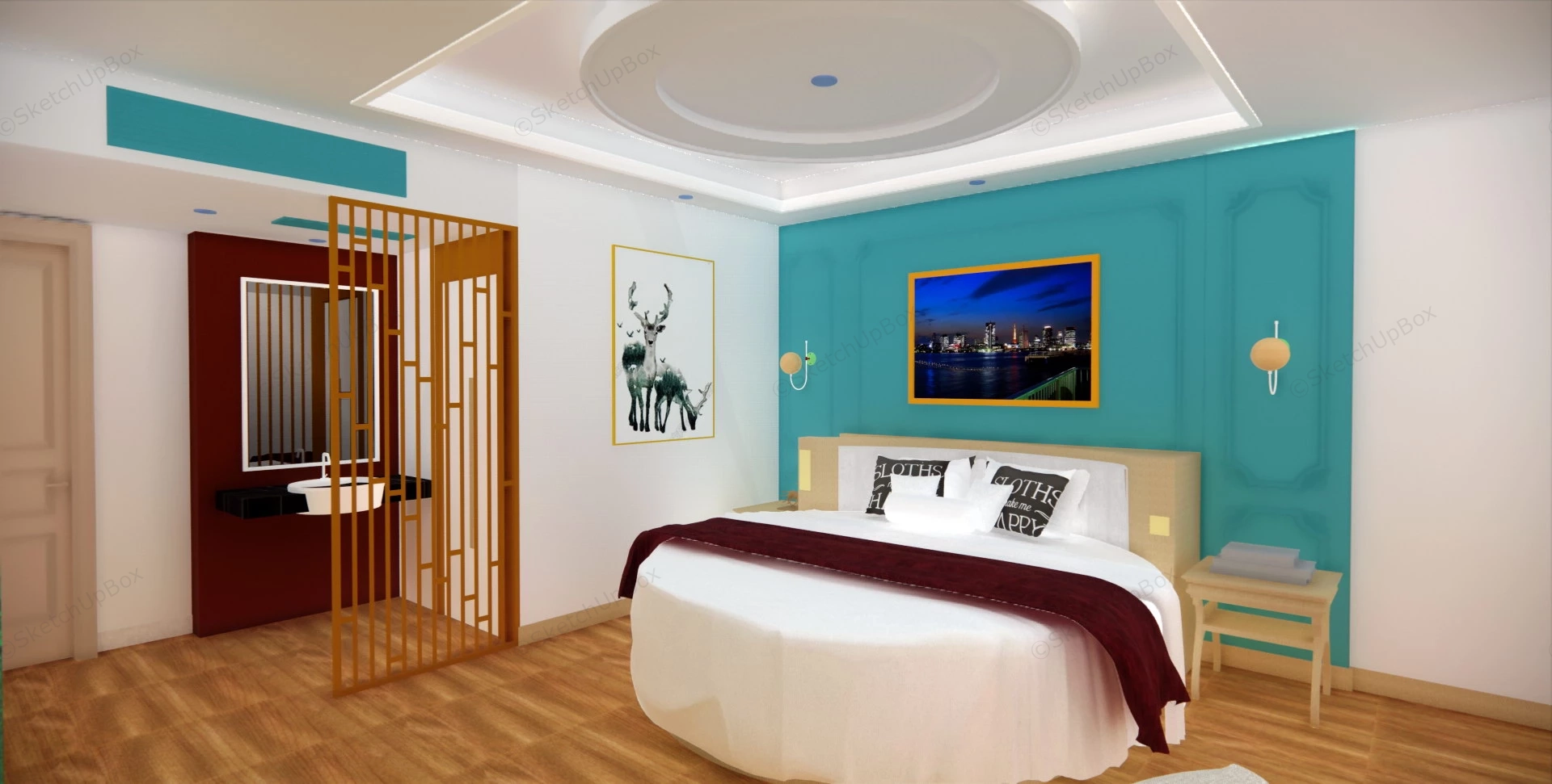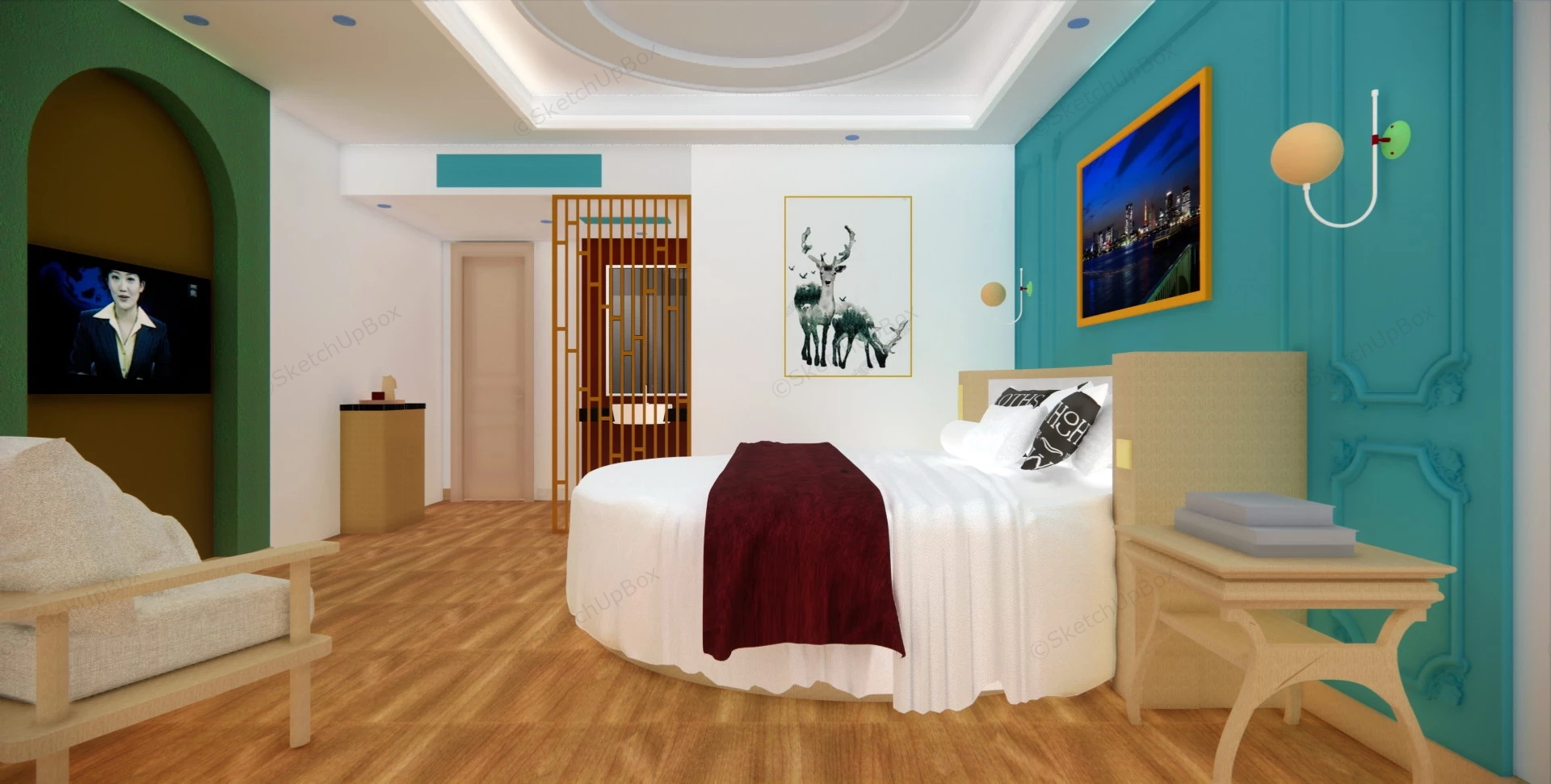 Hotel Round Bed Room Idea Hotel & Restaurant 679Hotel room interior design with round bed sketchup 3d model.VIP onlyOnly VIP downloadUpgrade VIPBuy nowEdges:895624Faces:563987File Version:SketchUp 8.skp File Size:111 MBTag Count:1Materials:56Render:NoneHotel RoomHotels