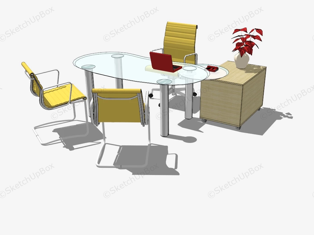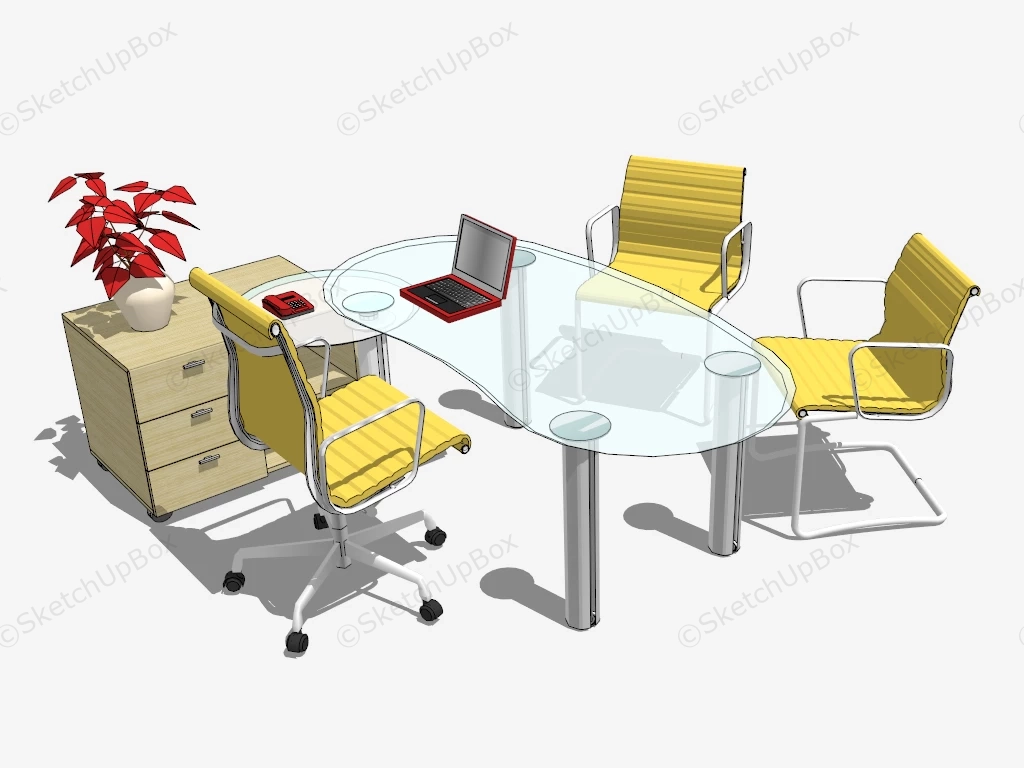 Glass Office Desk And Chairs Set Office Furniture 345Glass office desk and yellow cantilever chairs sketchup 3d model.DownloadEdges:27392Faces:12434File Version:SketchUp 8.skp File Size:2.2 MBTag Count:2Materials:26Render:NoneDesksOffice Chair