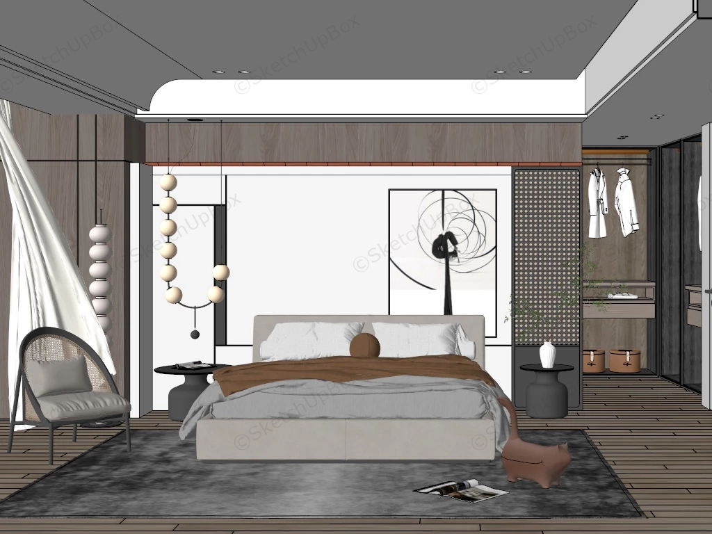 Modern Bedroom Design Idea Bedroom 505Modern bedroom interior design with wardrobe sketchup 3d model.VIP onlyOnly VIP downloadUpgrade VIPBuy nowEdges:1234266Faces:784998File Version:SketchUp 8.skp File Size:223 MBTag Count:1Materials:64Render:EnscapeBedroom FurnitureBedsWardrobe