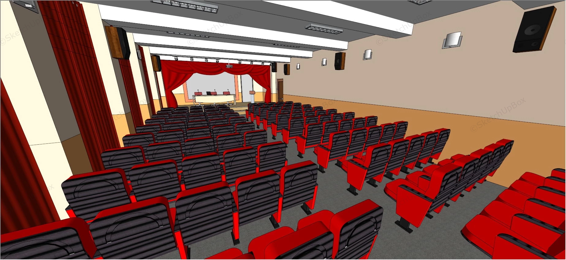 School Auditorium Design Commercial Space 1.75kSchool auditorium interior design sketchup 3d model.DownloadEdges:147813Faces:61906File Version:SketchUp 8.skp File Size:2.78 MBTag Count:3Materials:58Render:NoneAuditoriumSchoolTheater