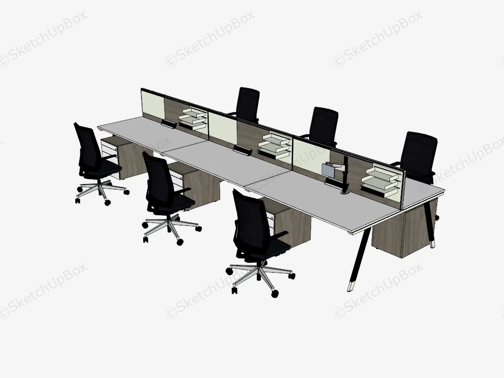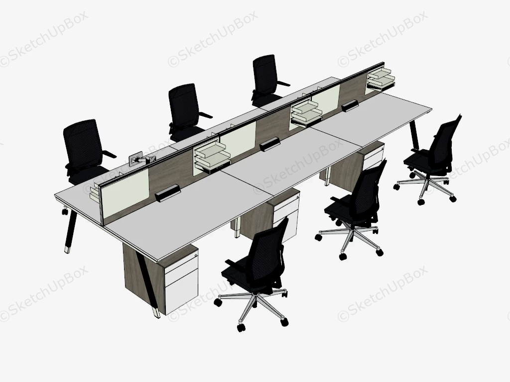 6 Person Workstation Desk Office Furniture 9606 Person office workstation desk with storage and chairs sketchup 3d model.DownloadEdges:206519Faces:125062File Version:SketchUp 8.skp File Size:10.5 MBTag Count:40Materials:13Render:NoneDesksOffice ChairWorkstation