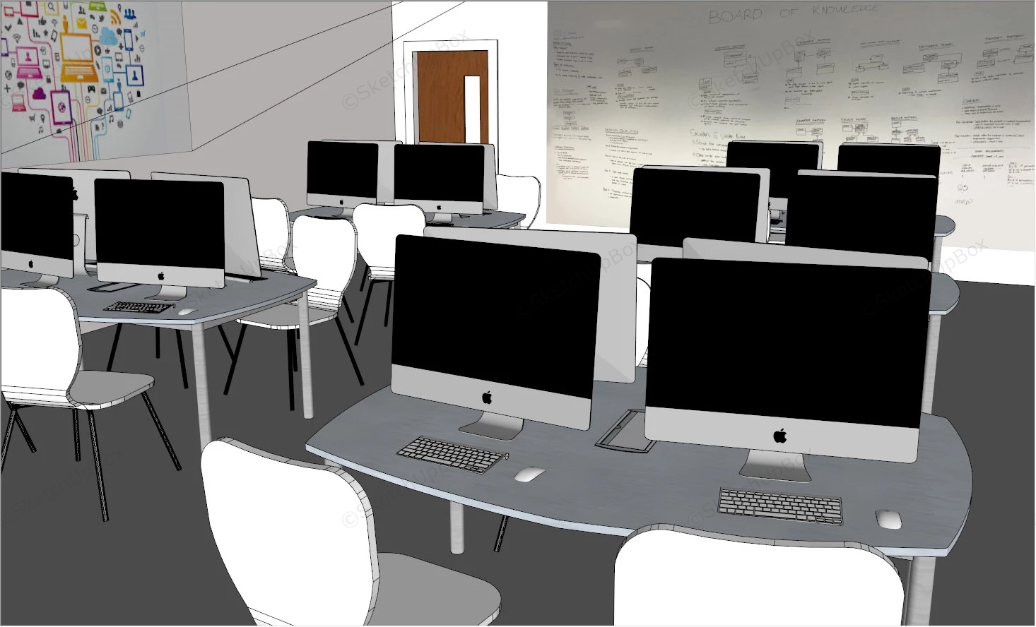 Computer Classroom Design Commercial Space 1.25kComputer classroom design sketchup 3d model.DownloadEdges:429570Faces:161761File Version:SketchUp 8.skp File Size:12.5 MBTag Count:23Materials:63Render:NoneClassroomComputers