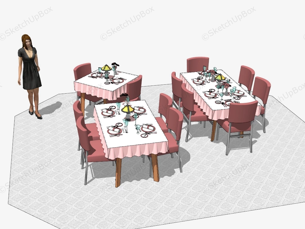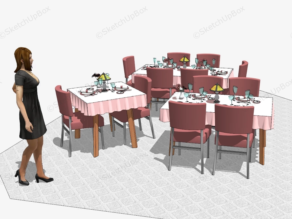 Restaurant Furniture Set Commercial Furniture 1.09kRestaurant dining tables and chairs set sketchup 3d model.DownloadEdges:258422Faces:113989File Version:SketchUp 8.skp File Size:3.96 MBTag Count:5Materials:28Render:NoneDining ChairDining TableRestaurant Furniture