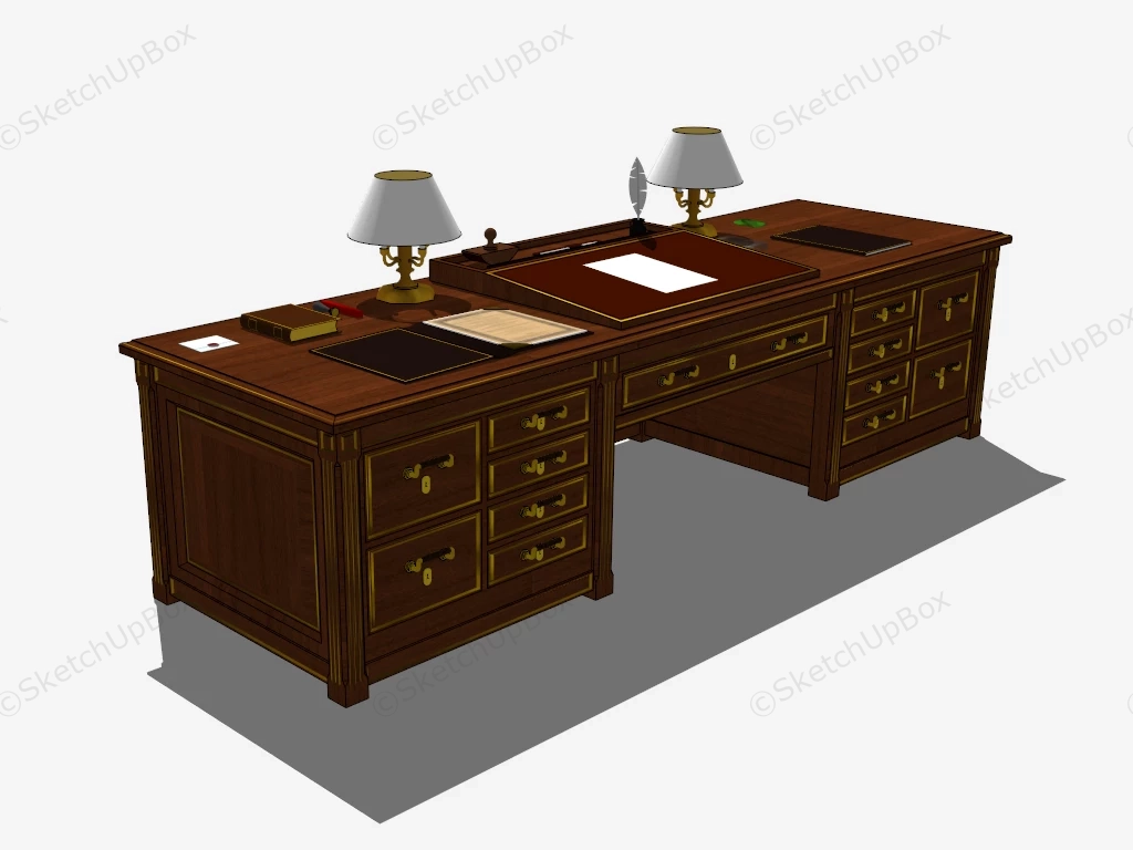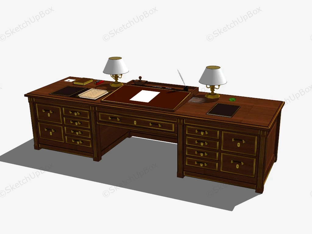 Vintage Executive Desk Office Furniture 1.2kVintage executive desk sketchup 3d model.DownloadEdges:42046Faces:19255File Version:SketchUp 8.skp File Size:3.22 MBTag Count:1Materials:29Render:NoneDesks